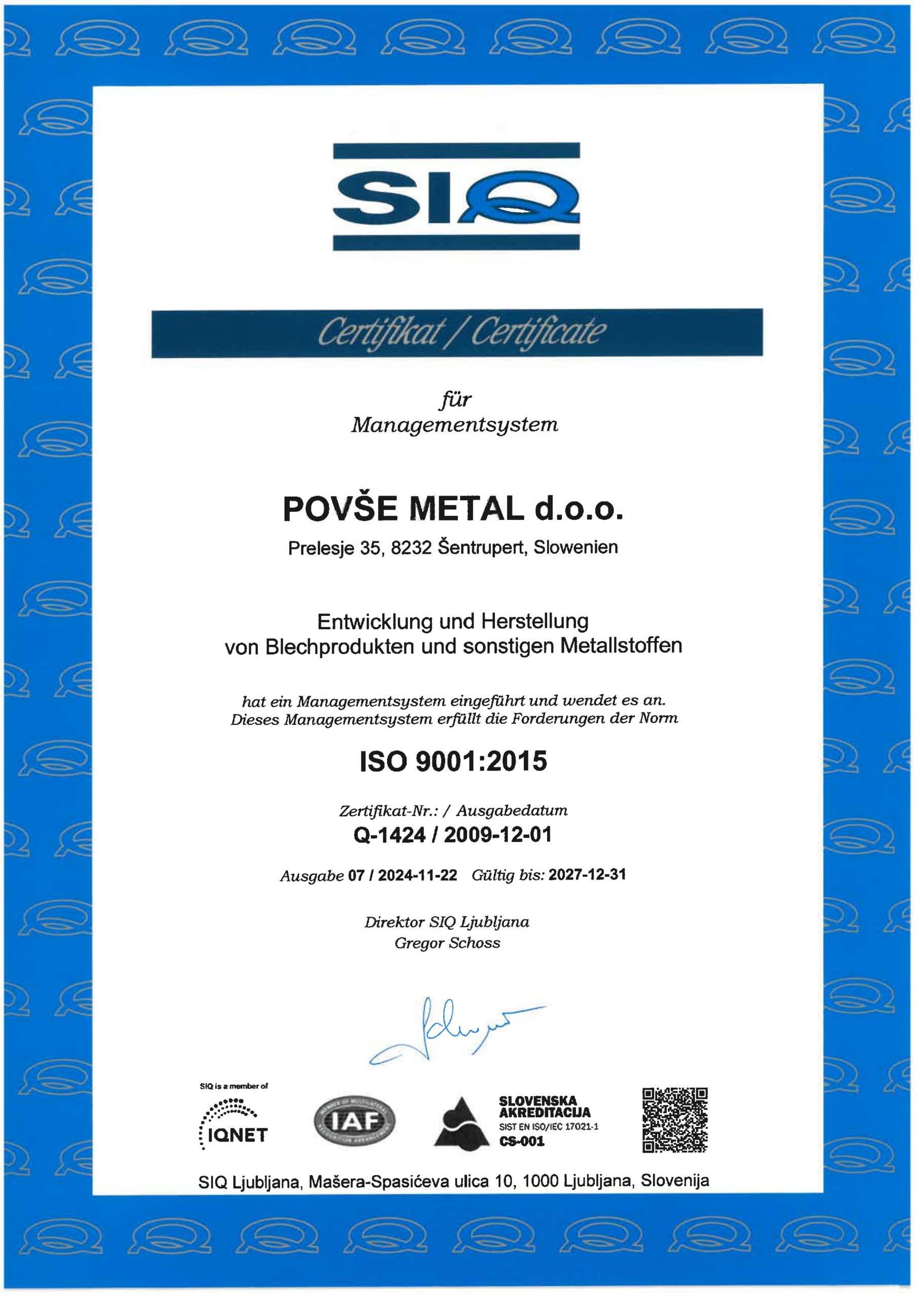 Wir arbeiten gemäß den Zertifizierungen ISO 9001:2015 für Qualitätsmanagement und ISO 14001:2015 für Umweltmanagement.